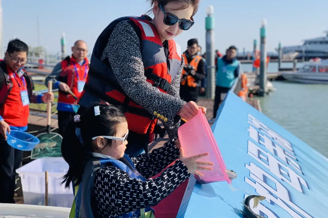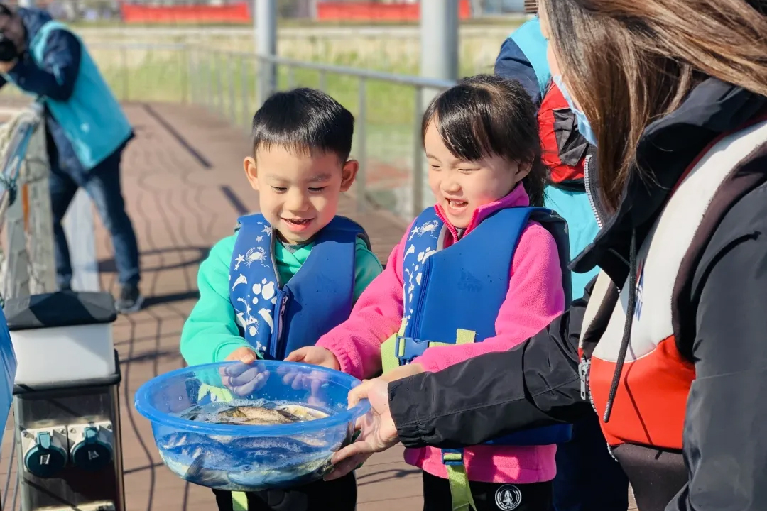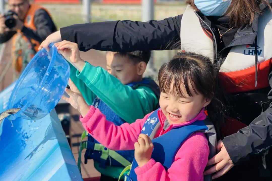 隨著小朋友們整齊的呼喊聲,一盆盆鮮活蹦跳的花白鰱魚苗,被投入到太湖中。數不清的魚兒在澄凈的太湖水中暢游,呈現出一派生機!
