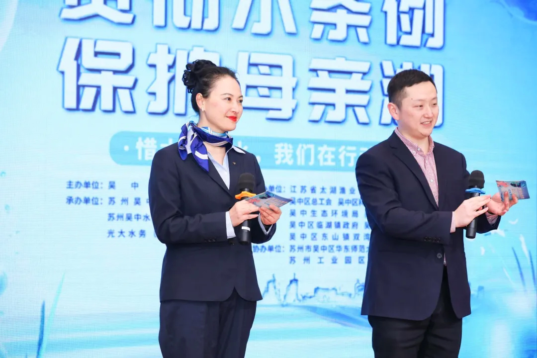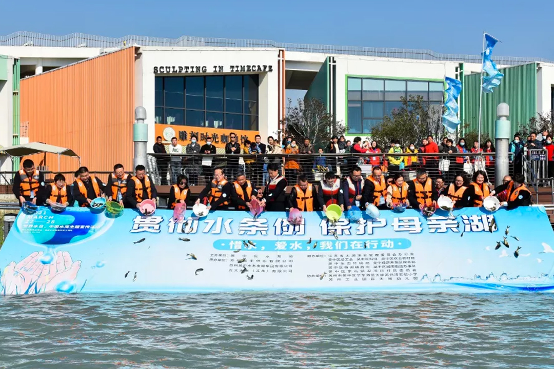 今天下午一點十五分,由蘇州市吳中區水務局主辦,蘇州吳中供水有限公司、蘇州吳中水務發展集團有限公司和光大水務(蘇州)有限公司承辦的一場名為“貫徹水條例,保護母親湖——惜水愛水我們在行動”的世界水日主題活動在臨湖沐春園內成功舉辦,共有154名市民志愿者和小朋友來到了現場參與活動。