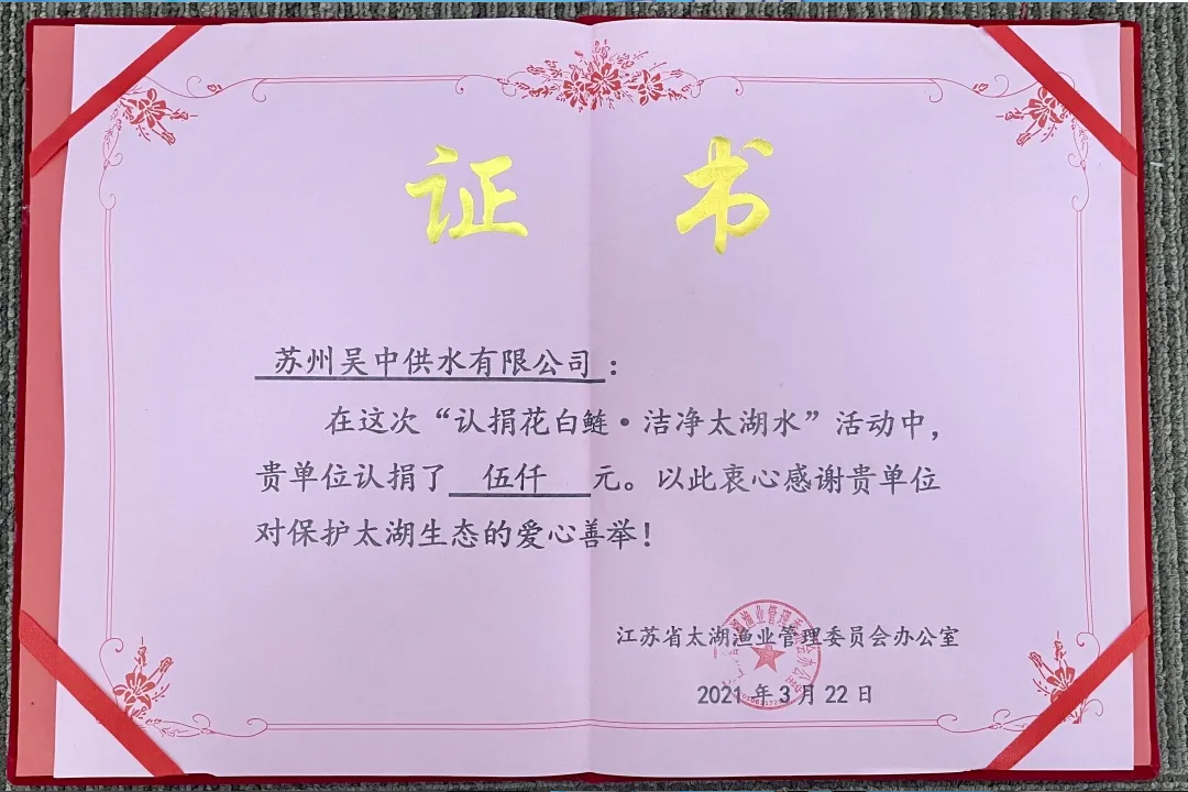 吳中供水已經堅持開展“放養花白鰱,潔凈母親湖”活動多年,太湖水源地的水質也得到明顯改善,目前,太湖原水水質基本達到《地表水環境質量標準》中II類水的標準。