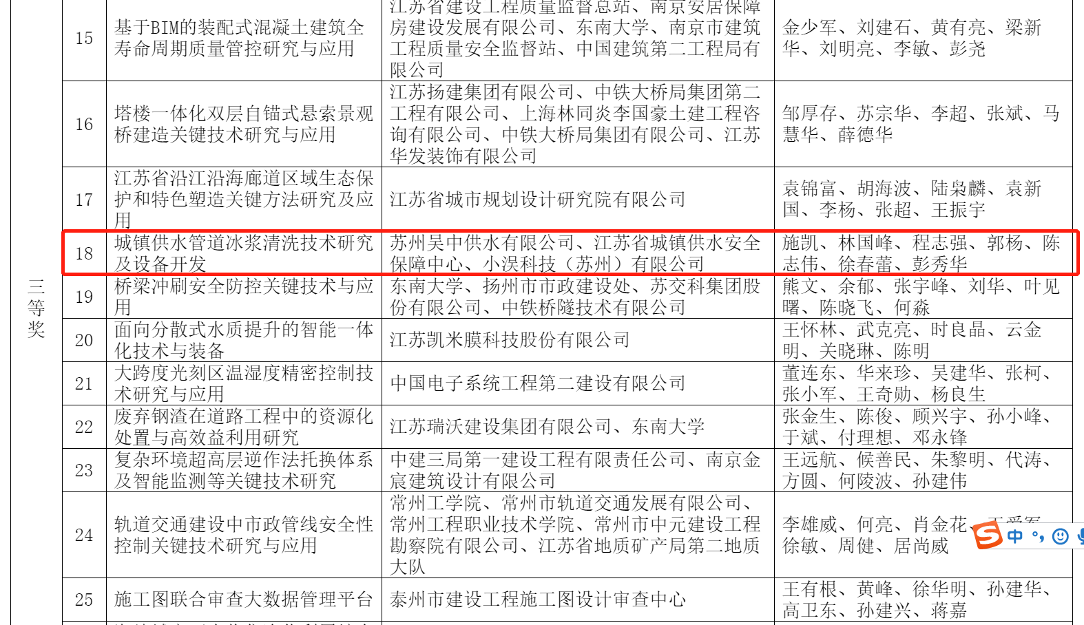 我司“城鎮供水管道冰漿清洗技術研究及設備開發”項目喜獲“2021年度中國城鎮供水排水協會科學技術獎”二等獎和“2021年度江蘇省建設科技創新成果”三等獎。