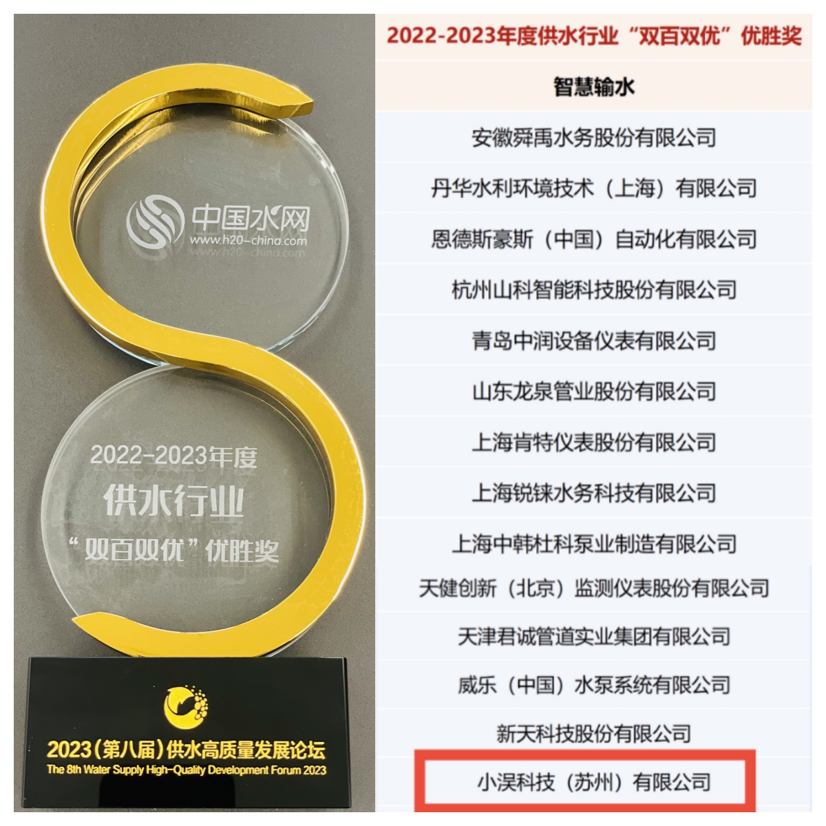 9月14日,2023年(第八屆)供水高質量發展論壇在長沙順利召開。在論壇現場,小洖科技(蘇州)有限公司獲評2022-2023年度供水行業“雙百雙優”優勝獎。