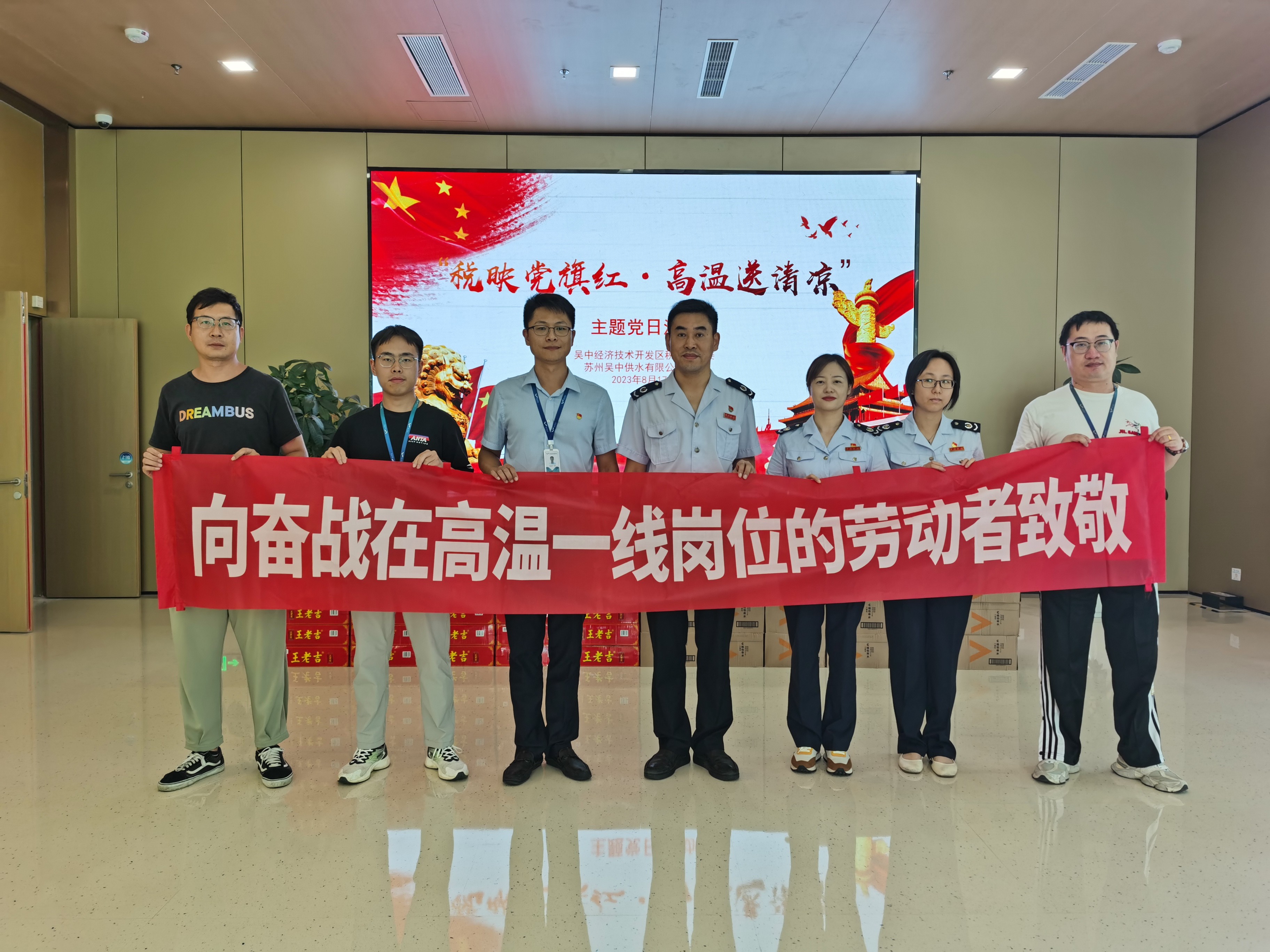 2023-08-208月17日,吳中經(jīng)濟(jì)技術(shù)開(kāi)發(fā)區(qū)稅務(wù)局黨委和蘇州吳中供水有限公司黨委聯(lián)合開(kāi)展“稅映黨旗紅 高溫送清涼”主題黨日共建活動(dòng)。經(jīng)開(kāi)區(qū)稅務(wù)局黨員代表給我司一線(xiàn)員工送上精心準(zhǔn)備的解暑飲品,為在高溫天氣保障安全供水的職業(yè)精神表示肯定和感謝。 自2018年6月開(kāi)展黨建共建的5年來(lái),雙方黨委持續(xù)以培訓(xùn)宣講、世界水日、高溫慰問(wèn)等多種形式開(kāi)展協(xié)作共建,為共同履行社會(huì)責(zé)任,激發(fā)黨建活力增光添彩。 -